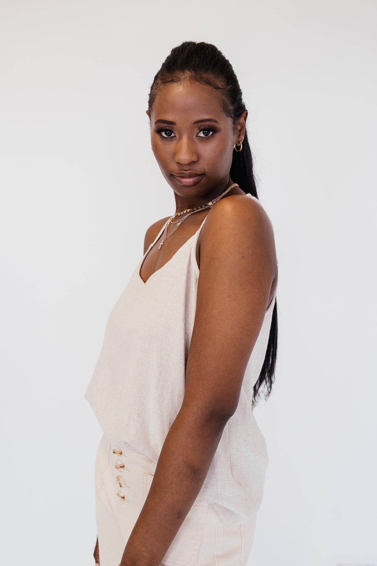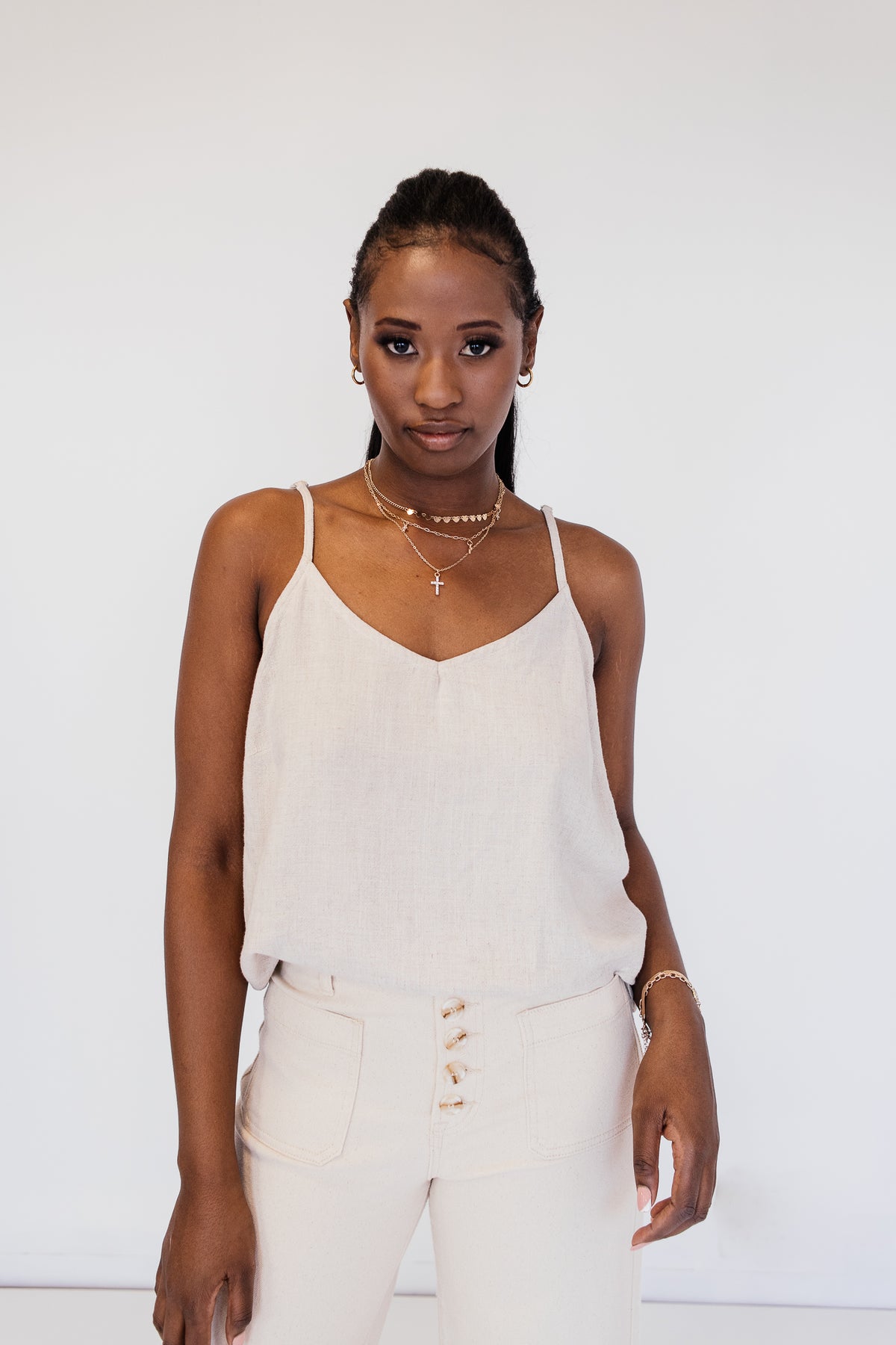 Effortlessly bold and endlessly versatile, our Harue Cami is the perfect mix of sultry and chic. Featuring a sleek silhouette with delicate spaghetti straps, this cami is crafted from soft, lightweight fabric that drapes beautifully over the body.