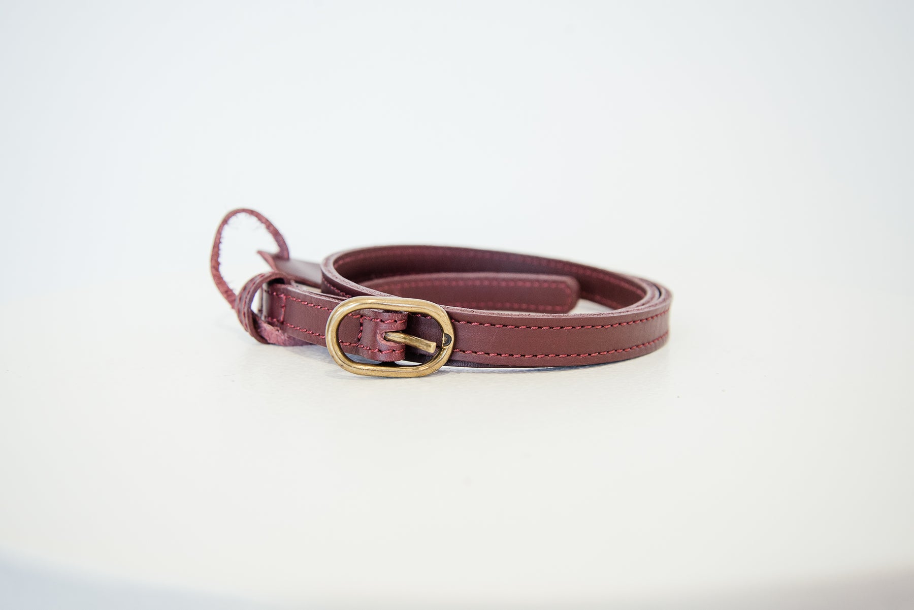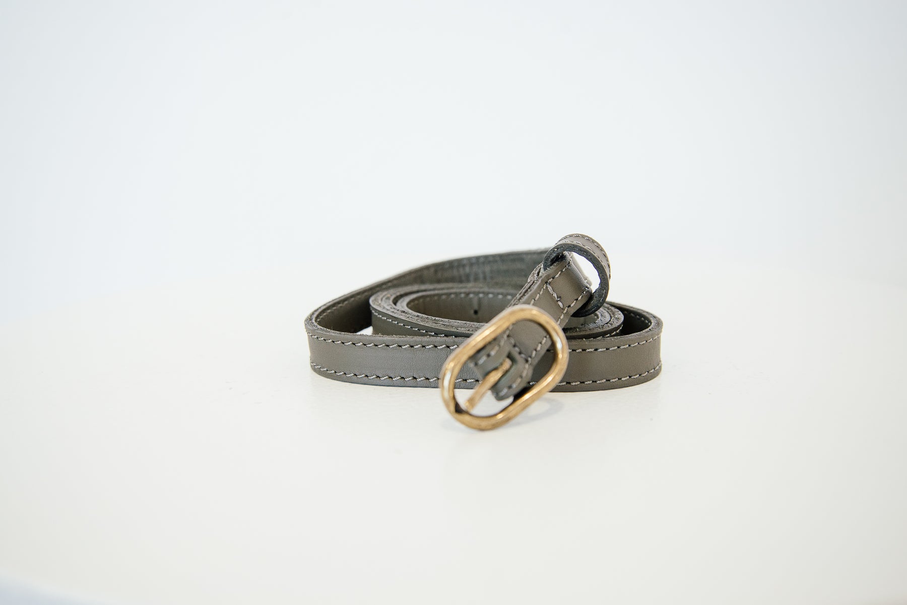 A timeless accessory, this thin leather belt is crafted for effortless sophistication. Designed with a sleek profile, it features a polished gold buckle that adds a refined touch of elegance. Perfect for cinching the waist or accenting everyday looks, it’s a versatile piece that elevates both casual and tailored outfits.