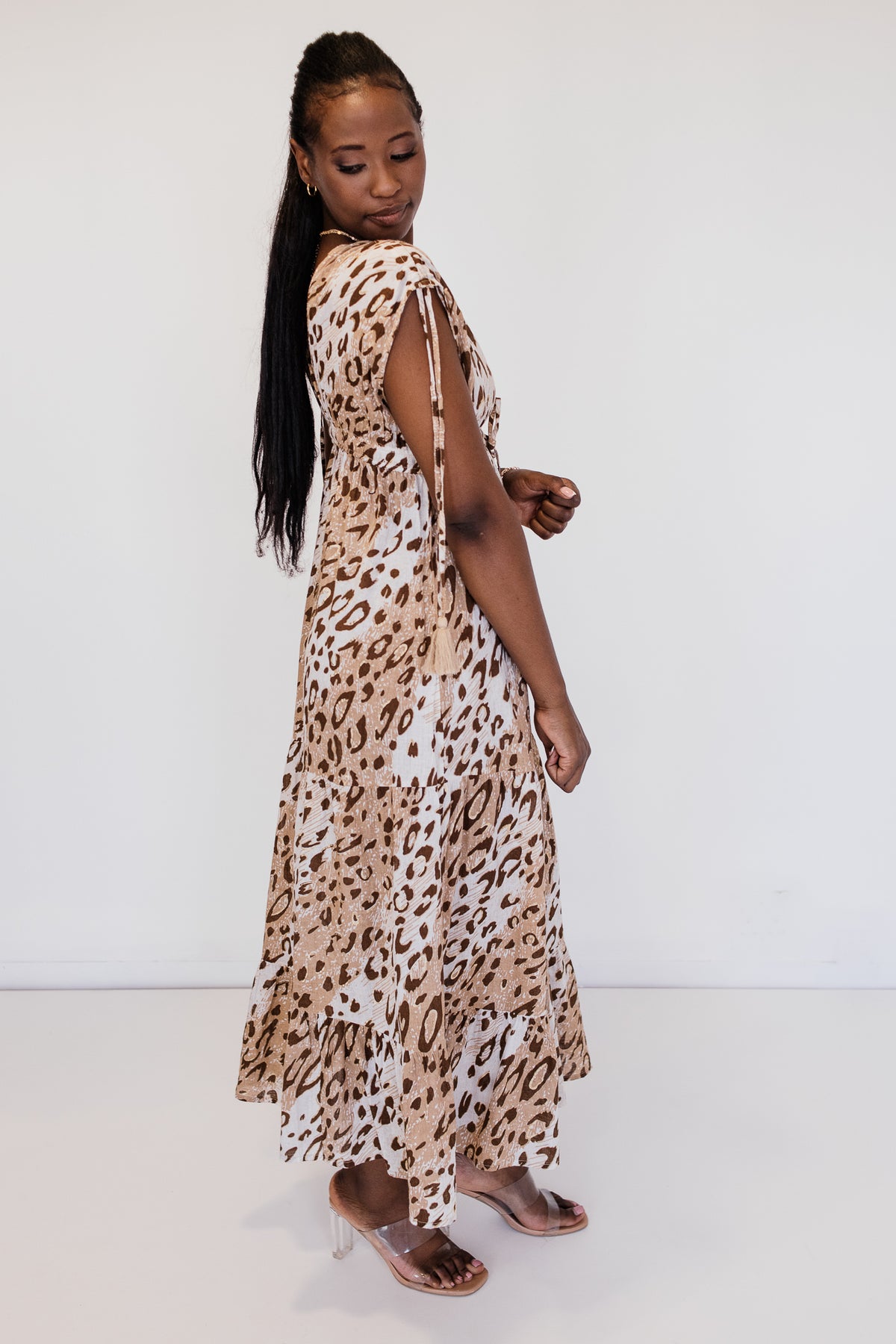 Unleash your wild side with this Sharo Dress, designed to combine effortless elegance with bohemian flair. Featuring an elasticated waist for a flattering silhouette and playful tassel ties for a touch of charm, this dress flows beautifully to ankle length, making it perfect for day-to-night styling.