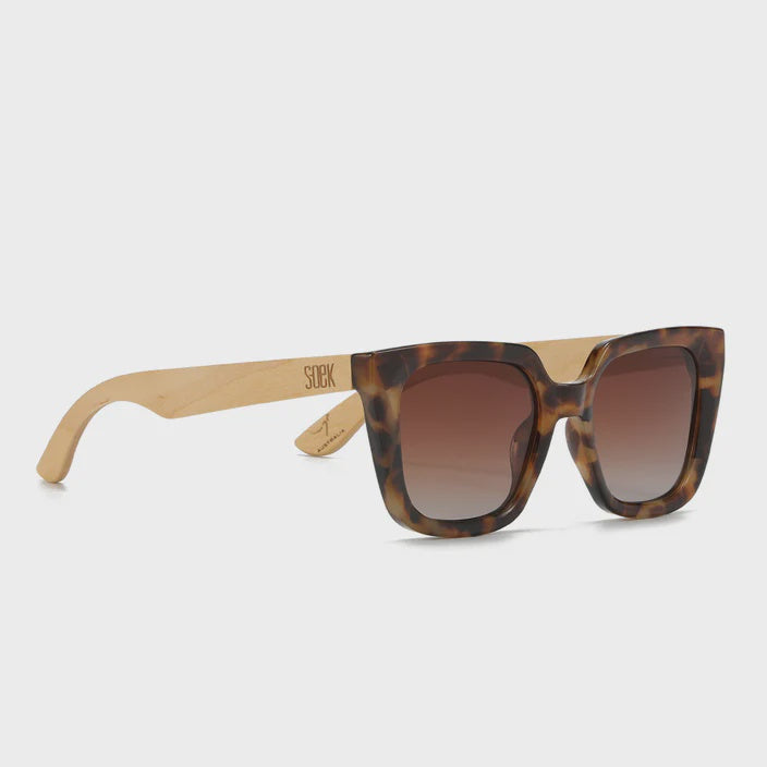 Designed for statement style and eco-conscious elegance, Soluna blends timeless glamour with modern sustainability. Featuring oversized frames and flattering proportions, Soluna has been fitted with white maple wooden arms and finished in timeless mocha tort.