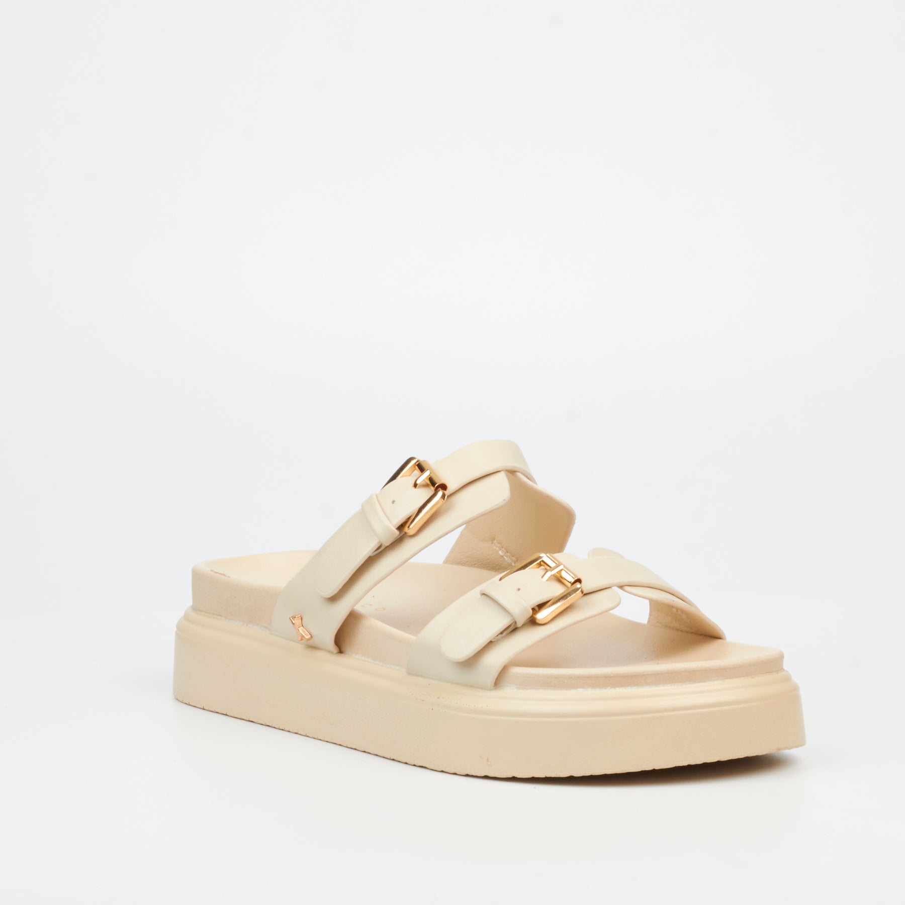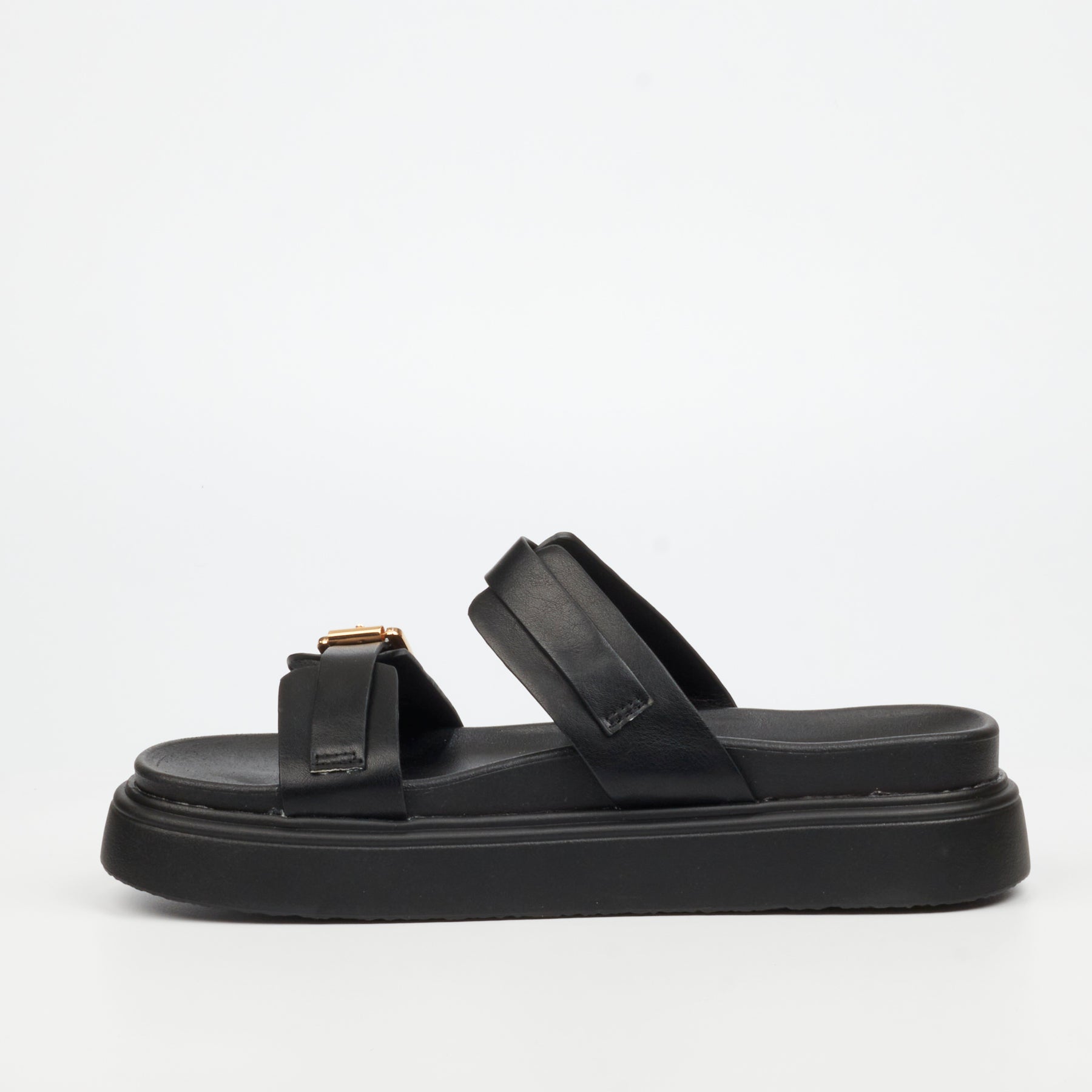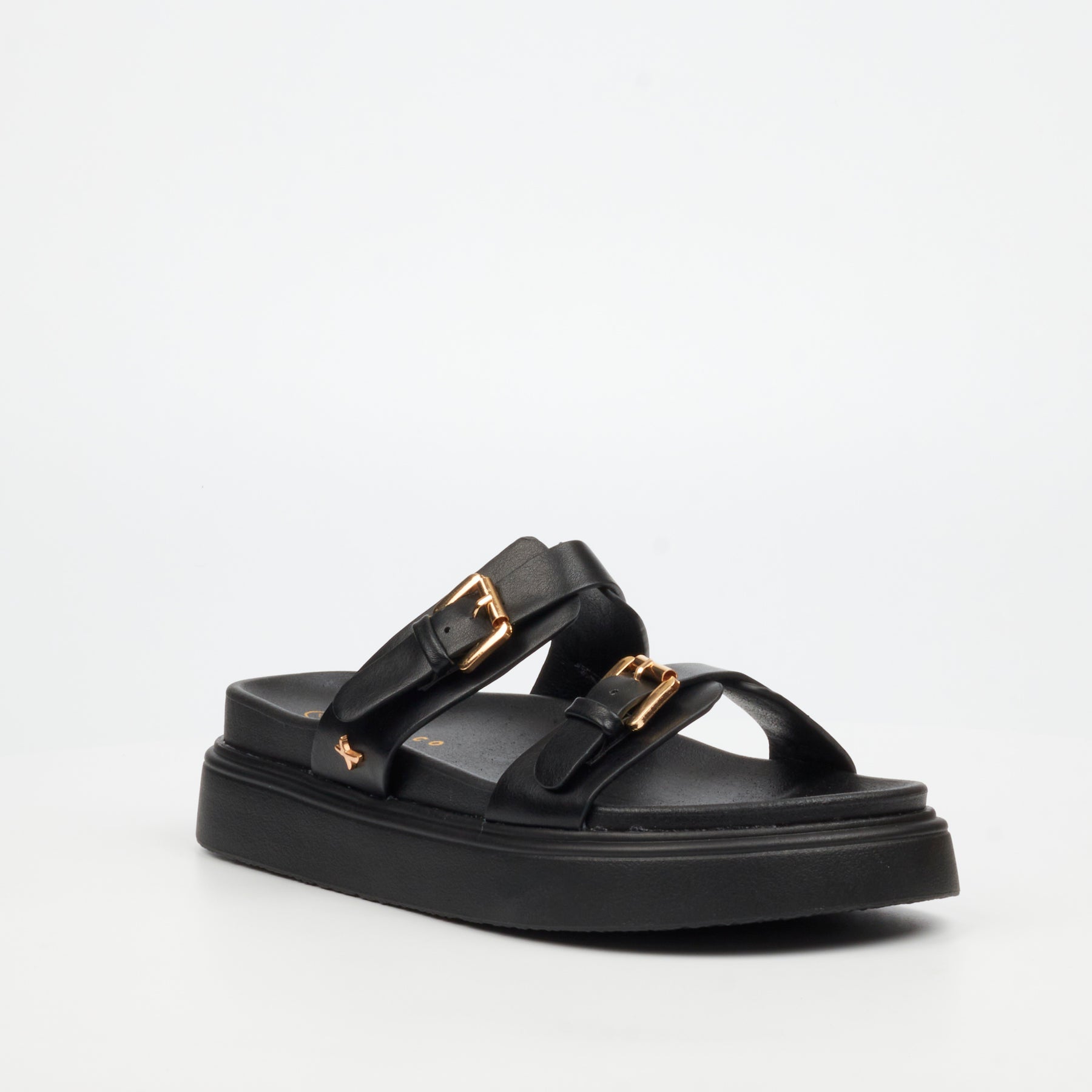 Make a bold statement with this sleek slip-on shoe, designed with a contemporary square toe for a modern edge. Featuring double metallic buckles across the vamp, it blends functionality with standout style. The slip-on design ensures effortless wear, while the polished details make it a versatile piece that elevates both casual and smart-casual looks.