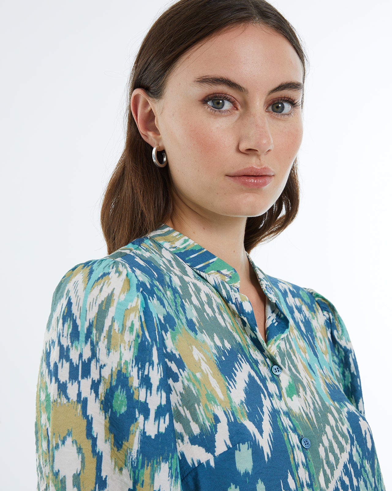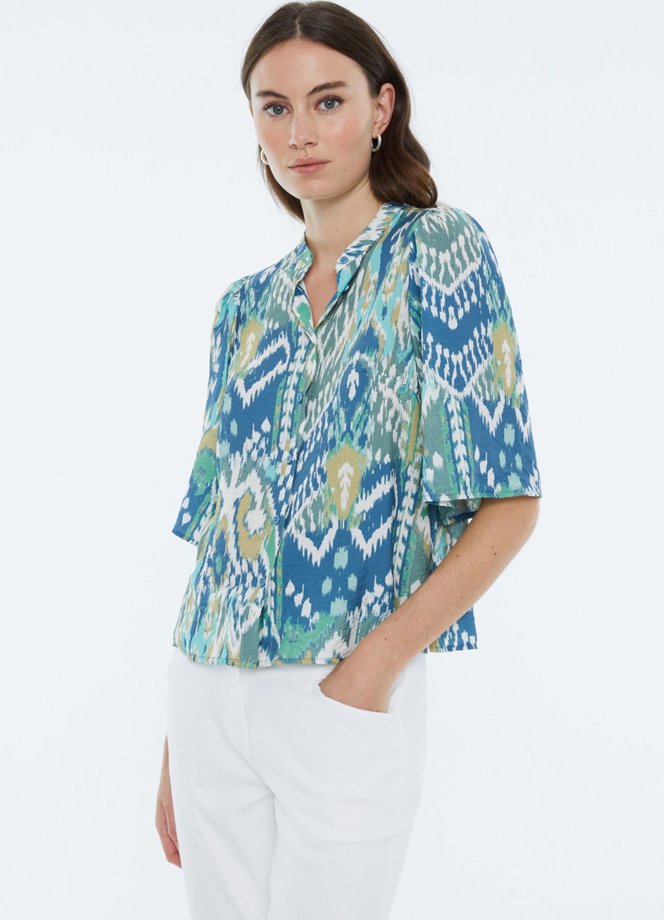Elevate your casual wardrobe with this lightweight, button-down shirt, designed for effortless style and comfort. Crafted from breathable fabric, it features short sleeves with delicate pleat detailing for a touch of sophistication. The abstract print adds personality, making it a standout piece for any casual outing or creative office look.